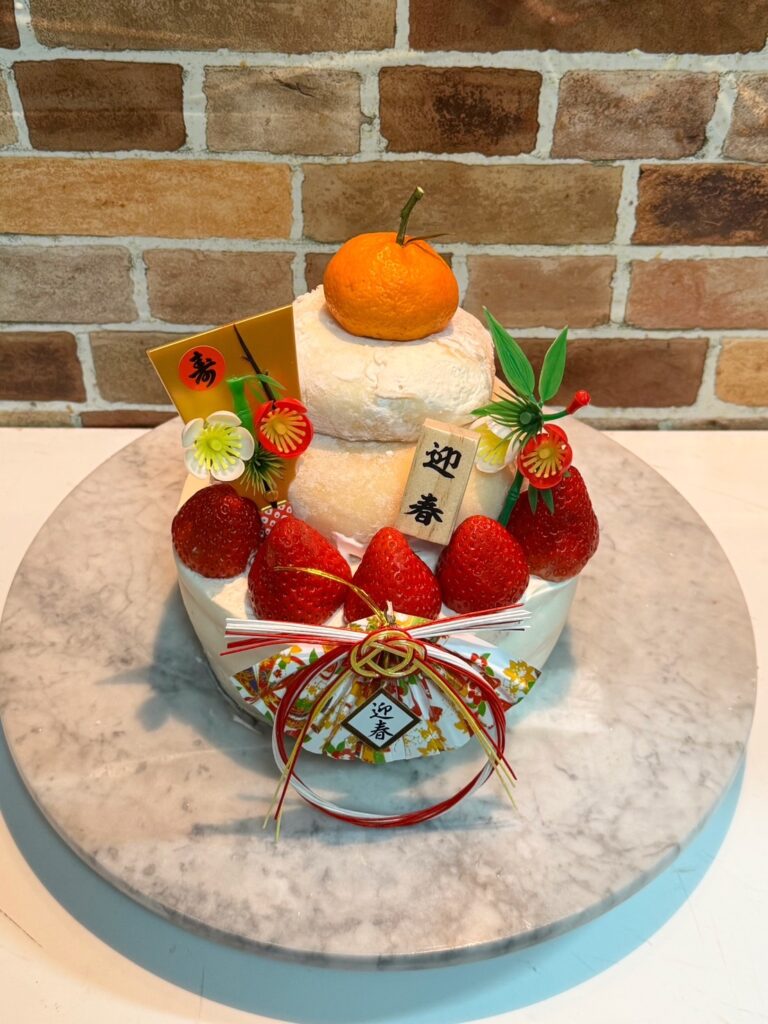 ケーキの土台から、鏡餅は求肥(ぎゅうひ)で生クリームを包み中々苦戦しながらも楽しんで出来上がりました。